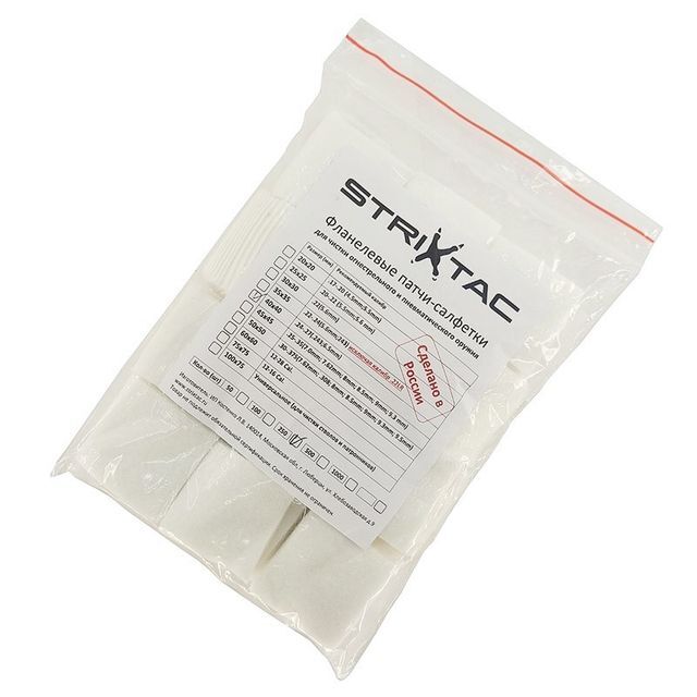 Одноразовые патчи для чистки оружия .243 и 6,5 мм калибров. Размер 4х4 см. Производство: StriXtac (Россия).
