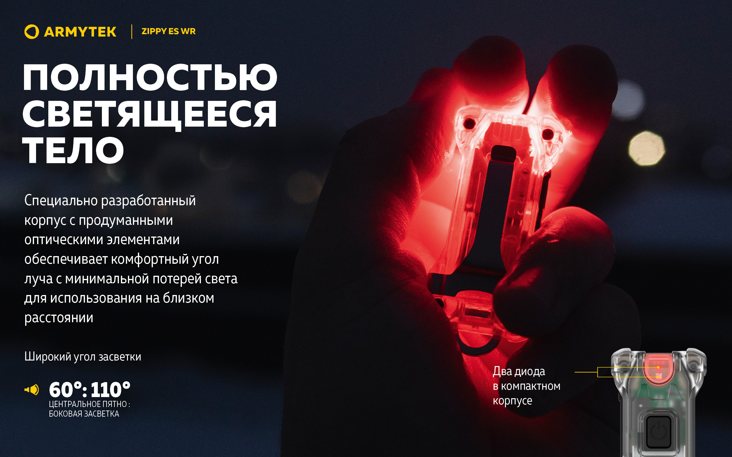 Световой поток до 120 люмен белого света и до 30 люмен красного света;