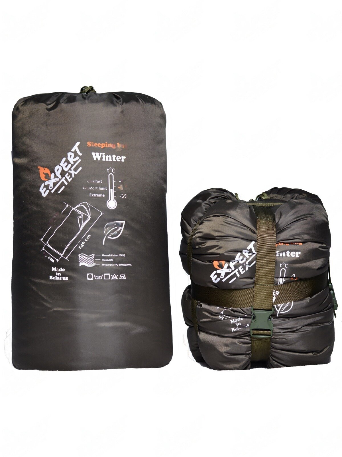 Компрессионный ремень для спальника - позволяет зафиксировать спальный мешок в сложенном состоянии, максимально его сжав, с целью экономии пространства в рюкзаке или багажнике. Особенности: Оснащен клапаном, который защищает спальник, уложенный в чехол, от попадания воды; Обеспечивает сжатие от 40 до 70%, в зависимости от изначальных габаритов спального мешка; Фиксируется на чехле с помощью застежек фастекс; Компрессионный ремень для спальника универсален и регулируется по длине. Производство: Expert-Tex (Беларусь)