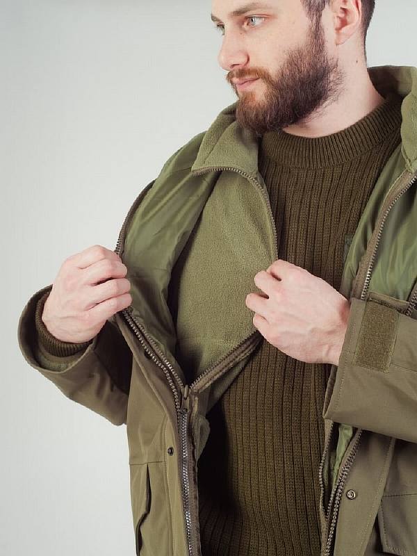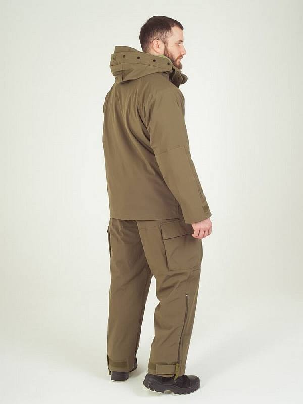 Куртка: широкий защитный воротник-стойка два боковых и один нагрудный карман рукава на эластичной тесьме резинка по низу куртки для индивидуальной регулировки влаго и ветрозащитная куртка противоснежная юбка внутри вентиляционные молнии в подмышечной области двойная передняя молния закрытая клапаном регулируемые манжеты с липучкой регулировка шнурком на талии В куртке есть остегивающаяся на молнии флисовая подкладка. В такой куртке пребывать комфортно поскольку на ней есть вентиляционные молнии. Локти куртки усилены что предохраняет от повреждений куртку. Усиленная молния отлично защищает от влаги и ветра. У куртки есть два больших нагрудных кармана манжеты рукавов утягиваются с помощью липучек. Небольшой карман на левом рукаве куртки. флис очень высокого качества - он не "скатывается". Брюки: два передних прорезных кармана на молнии свободного покроя с отстёгивающейся флисовой вставкой на талии застегивается на кнопку и утягивается шнурком у брюк есть 2 прорезных кармана с клапанами и 2 кармана с клапанами на кнопках на штанинах колени брюк также усилены