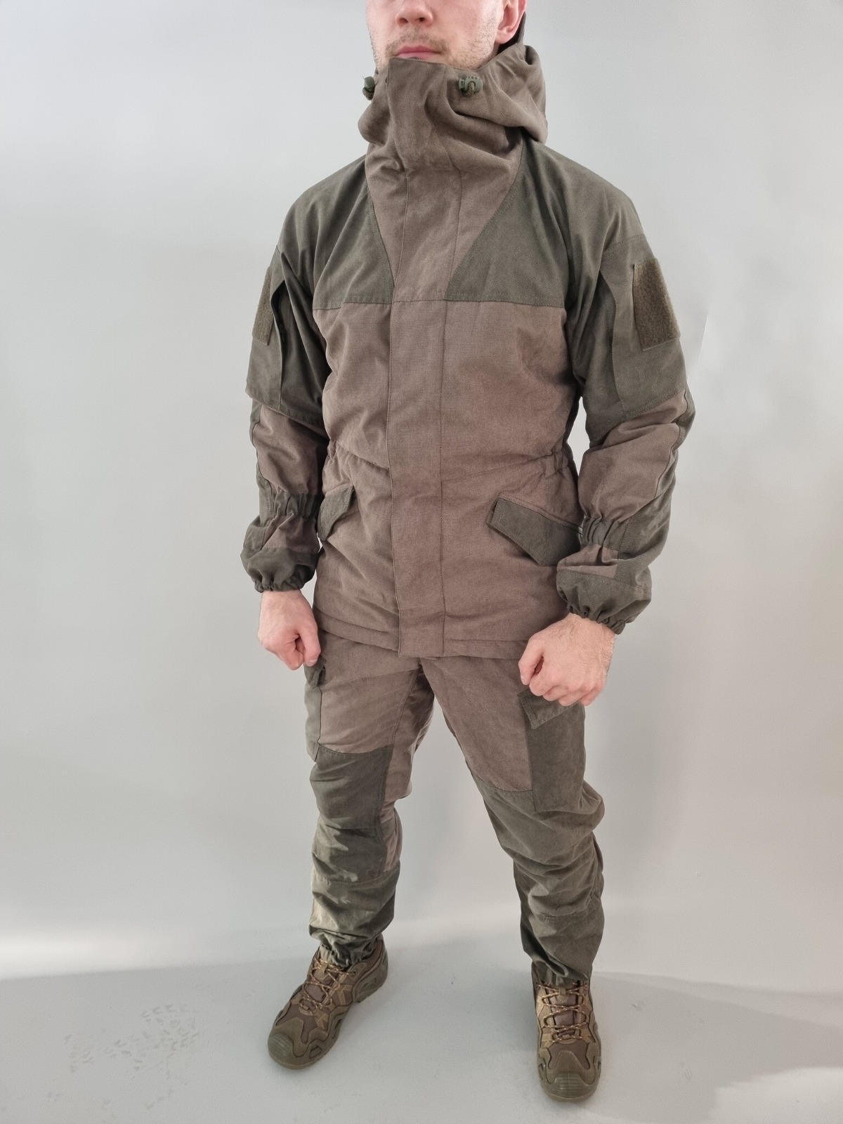 Костюм Горка 3 из палаточной ткани в расцветке хаки с флисом! Производство Барс (Северный Кавказ, г. Пятигорск). Горный демисезонный ветрозащитный костюм, хорошо маскирующий в условиях горно-лесистой местности. Костюм предназначен для защиты от резких перепадов температур и сильного ветра в условиях горной местности. Комплект костюма включает куртку-парку и брюки, утепленных флисом. Подклада - флис. Куртка-парка свободного покроя. Объем куртки регулируется тесьмой по бокам на талии и шнуром в кулиске низа. Низ рукавов регулируется резинотканевой тесьмой. Куртка шьется из плотной х/б ткани полотняного плетения, используемой для производства палаток, и усиливается на локтях вторым слоем смесовой ткани. Брюки свободного покроя, оснащаются шестью карманами: двумя "портфельными", набедренными (с клапанами застегивающимися на пуговицы), двумя задними прорезными с клапанами, двумя боковыми прорезными, а также внутренними фактурами - пыльниками, заправляемыми в ботинки, для избежания попадания песка и камней внутрь ботинка. Пояс брюк регулируется по объему шнуром, резинкой для помочей. Брюки усиливаются вторым слоем смесовой ткани на коленях, сзади и внизу. Костюм горный изготавливается из палаточной плотной х/б ткани полотняного плетения. Критичные для изнашивания места костюма усилены. Ткань: палаточная. Ткань грета.