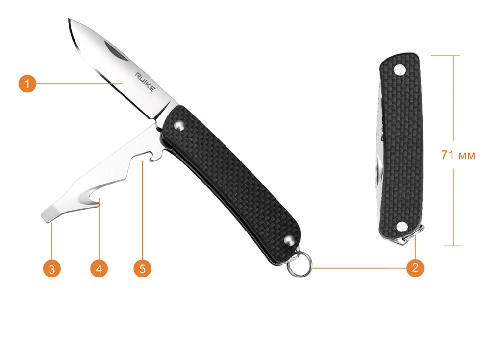 Модель Ruike S21 является компактным, но по-настоящему многозадачным ножом. Производителям удалось вместить в нем все самые востребованные в туристической среде инструменты. При этом, данный складной нож весит 43 грамма.