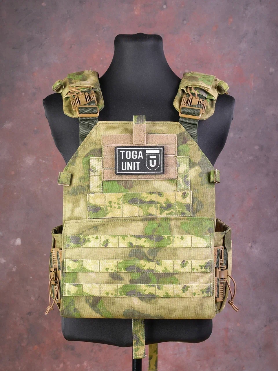 На всей внешней поверхности плитника нашиты стропы молли что позволяет разместить снарежение индивидуально изходя из выполняемых задач;
