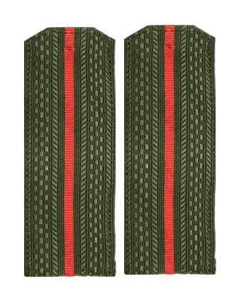 Пластиковые погоны МО оливкового цвета с одним красным просветом. Длина 14 см.