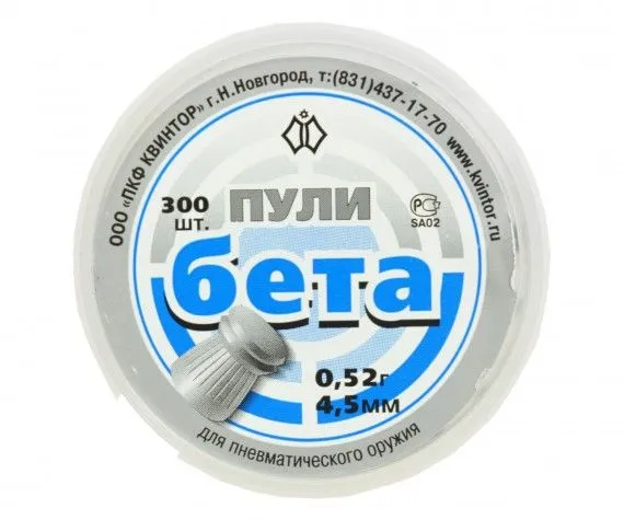 Пневматические пули «Квинтор Бета» калибра 4,5 мм – ваш идеальный выбор для точных выстрелов! Пакет из 300 штук обеспечит вам долгую стрельбу без необходимости постоянных закупок. Высококачественный сплав гарантирует стабильность полёта и точность попадания. Оптимальный вариант как для спортивной стрельбы, так и развлекательной охоты по мишеням! Удобная упаковка позволяет хранить и транспортировать боеприпасы без потерь.
