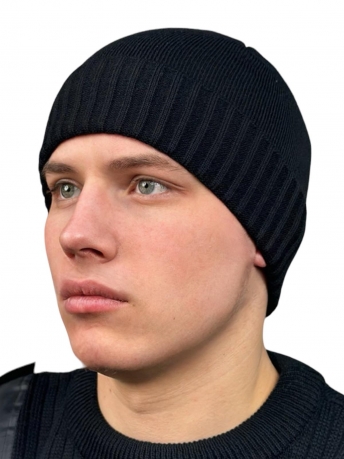 Черная вязаная мужская шапка .
