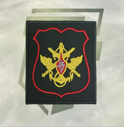 Нашивка на рукав Центральный аппарат Министерства обороны. Она состоит из плотной основы. По центру вышита шелковой нитью эмблема Центрального аппарата МО на зеленом фоне красный кант желтый орел. Размеры: 100x85мм. Крепиться на липучку.