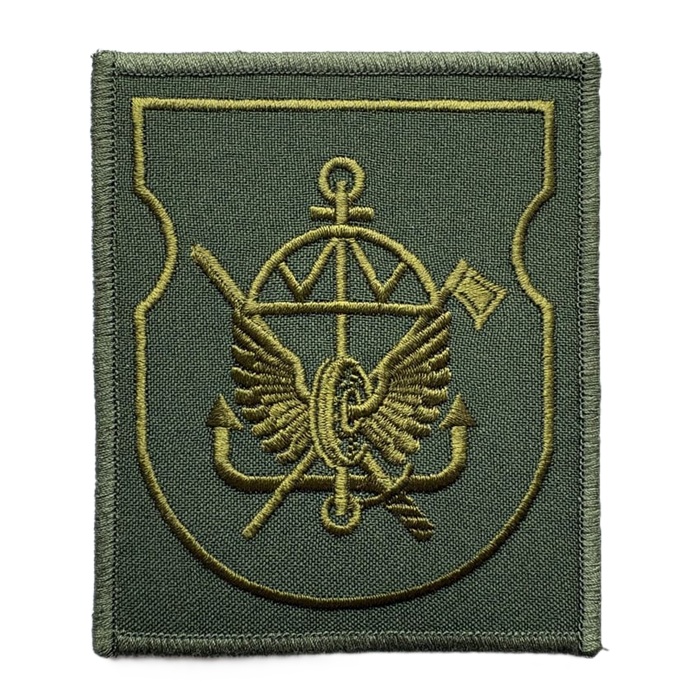 Шеврон вышитый батальона ЖДВ (меч, топор) полевой, ткань габардин. На липучке. Размер: ширина 8,5см; высота 10см.