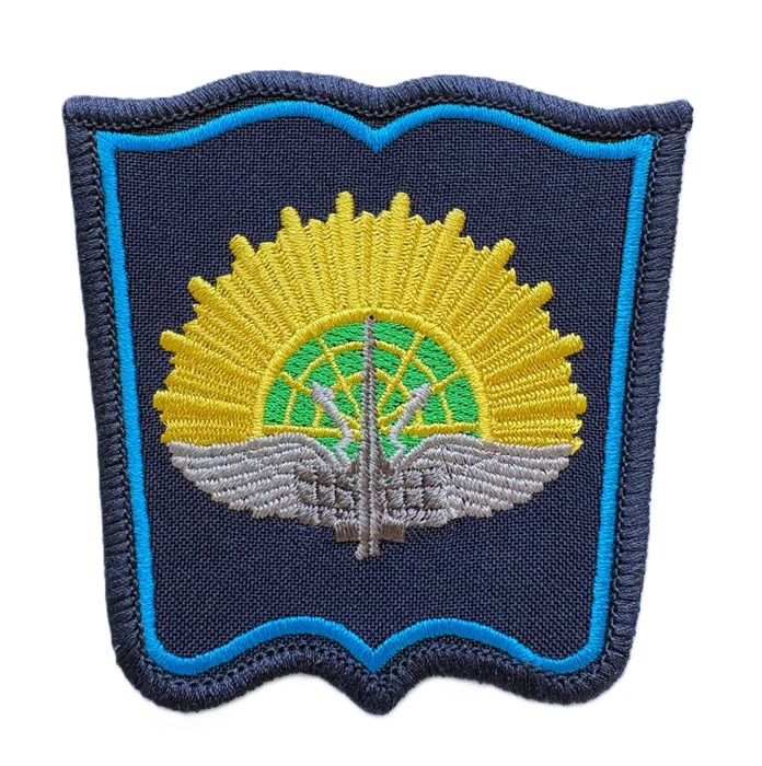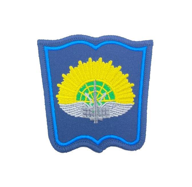 Шеврон ЯВВУ ПВО на парадную форму одежды. Нашивка с изображением эмблемы Ярославского военного училища на синем фоне с синим кантом. Пришивная.