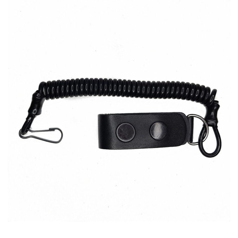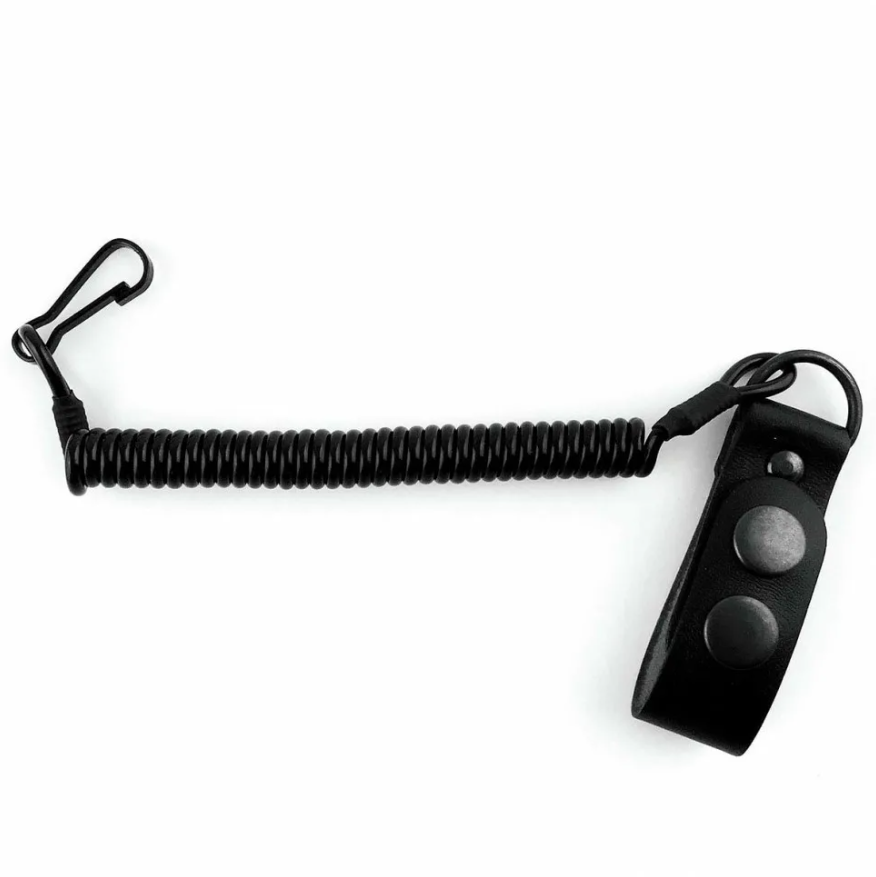 Шнур страховочный кевларовый с латунным карабином и кожаной шлевкой (черный)
