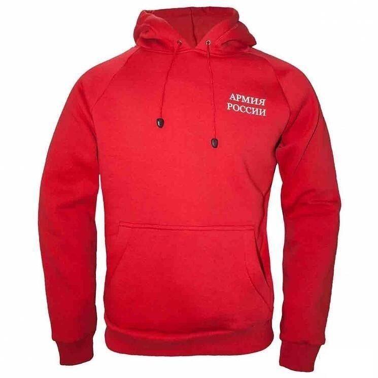 Толстовка армейская спортивная с надписью Армия России. Спереди два кармана "кенгуру". Состав: Хлопок 65%, ПЭ 35% Цвет красный. Размеры уточняйте у продавцов.