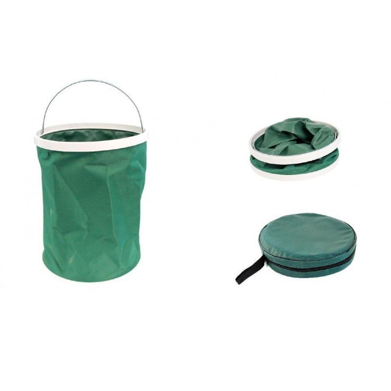 Объём 13 л. Размеры в сложенном виде 250х250х50 мм / в разложенном виде 240х240х300 мм. Не складывается под тяжестью воды. Материал: ткань Оксфорд 600D полипропилен.